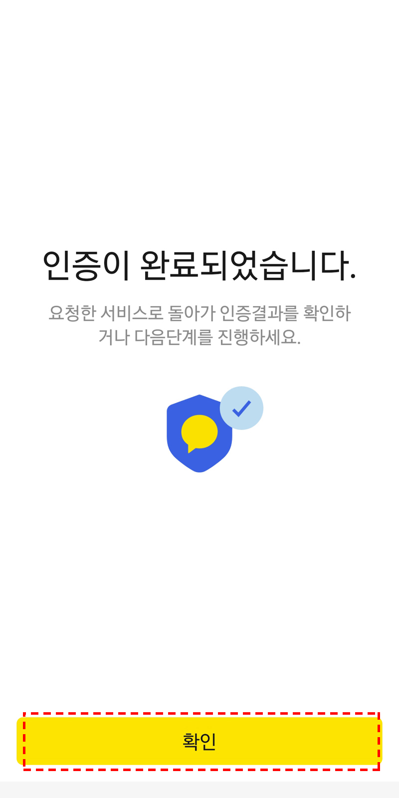 6) 인증이 완료되었다는 창이 열리면 '확인' 버튼 클릭