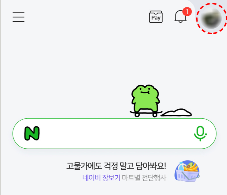 1) 네이버앱을 실행하고, 우측상단 프로필사진 아이콘을 클릭